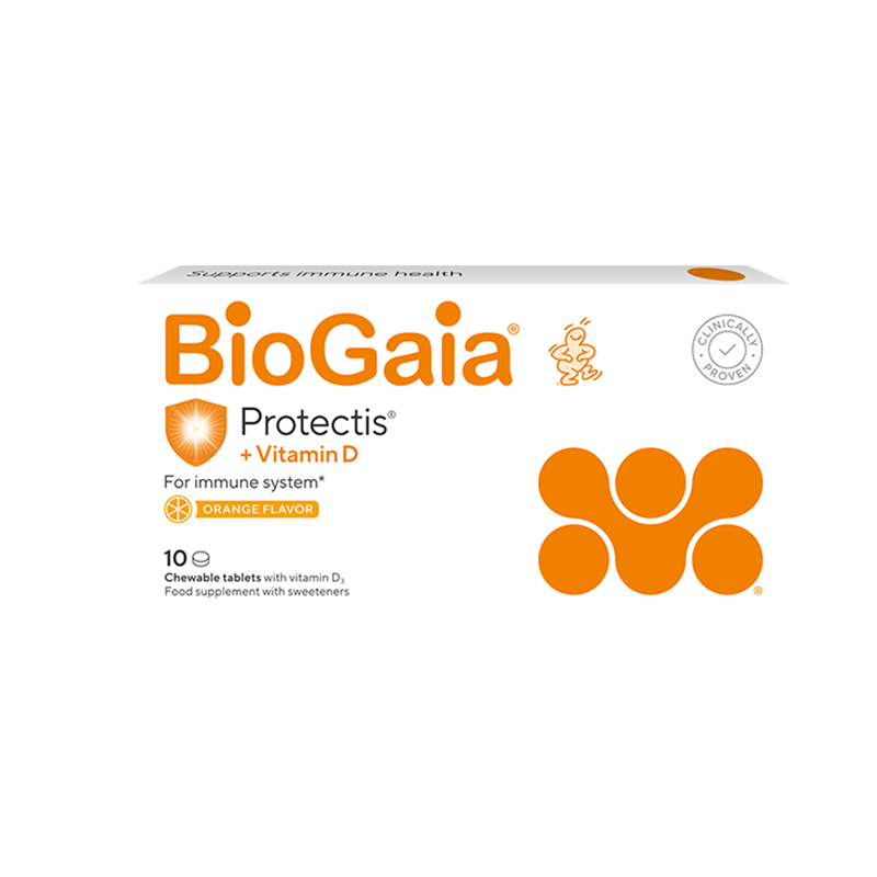 BioGaia Protectise apelsinimaitselised tabletid on Lactobacillus reuteri Protectist sisaldav toidulisand. See on turvaline, lihtne ja mugav viis optimaalse arvu bakterite tagamiseks seedetraktis. Vaid üks tablett päevas tagab soovitusliku annuse 100 miljonit Lactobacillus reuteri Protectise elusbakterit. Tänu selle erakordsetele, hästi dokumenteeritud ja mitmekülgsetele omadustele peetakse Lactobacillus reuteri Protectist väga kvaliteetseks piimhappebakteriks. Kliinilistes uuringutes on tõestatud selle ohutus nii lastele kui ka täiskasvanutele. Saadaval 10 tabletiga pakendites.
